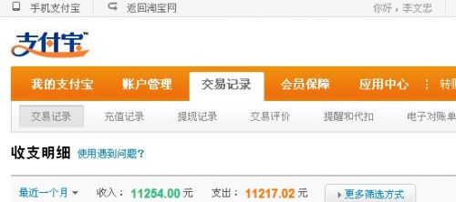 我虽然做网络有五六年了,但是开淘宝店,才有一年半时间。首先我现在通过淘宝开店的收入每月平均10000元上下。我相信这是很多淘宝开店新人的一个目标。当然实现了这个目标,我心里无比的高兴,至少自己在淘宝事业当中又更上了一个台阶。以下是最近一个月的收入截图: